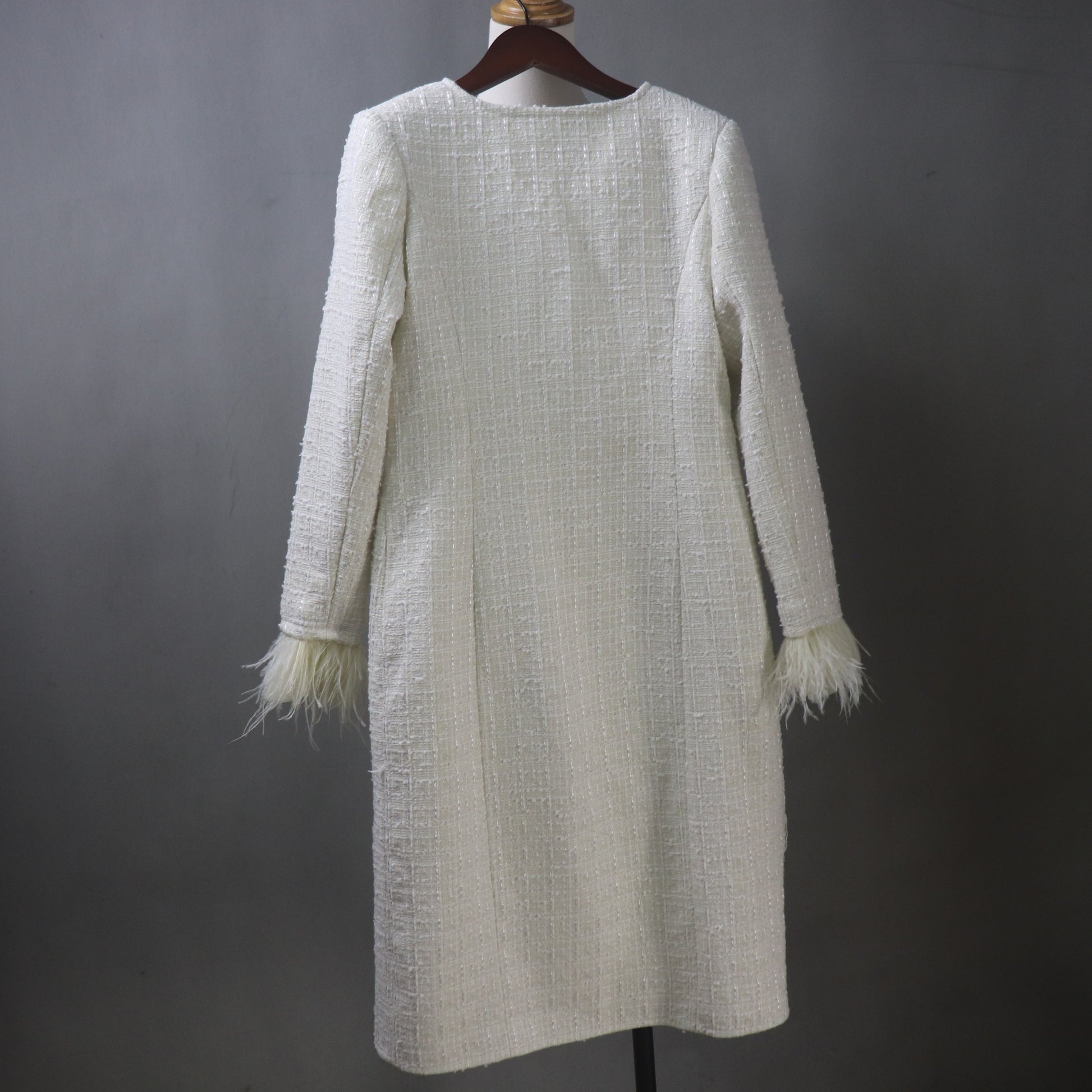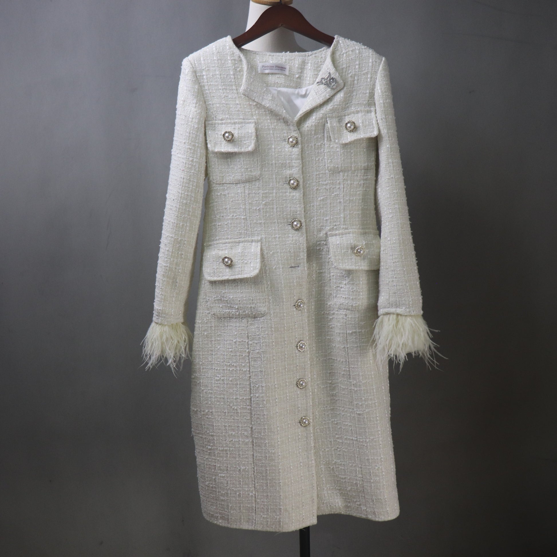 Luxurious Custom Tweed White Overcoat - Made-to-Measure Winter Jacket, Feather Trim, All Sizes and Any Length