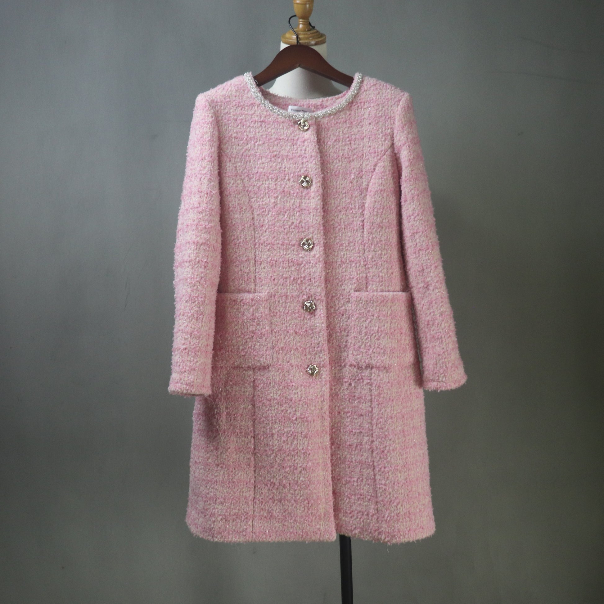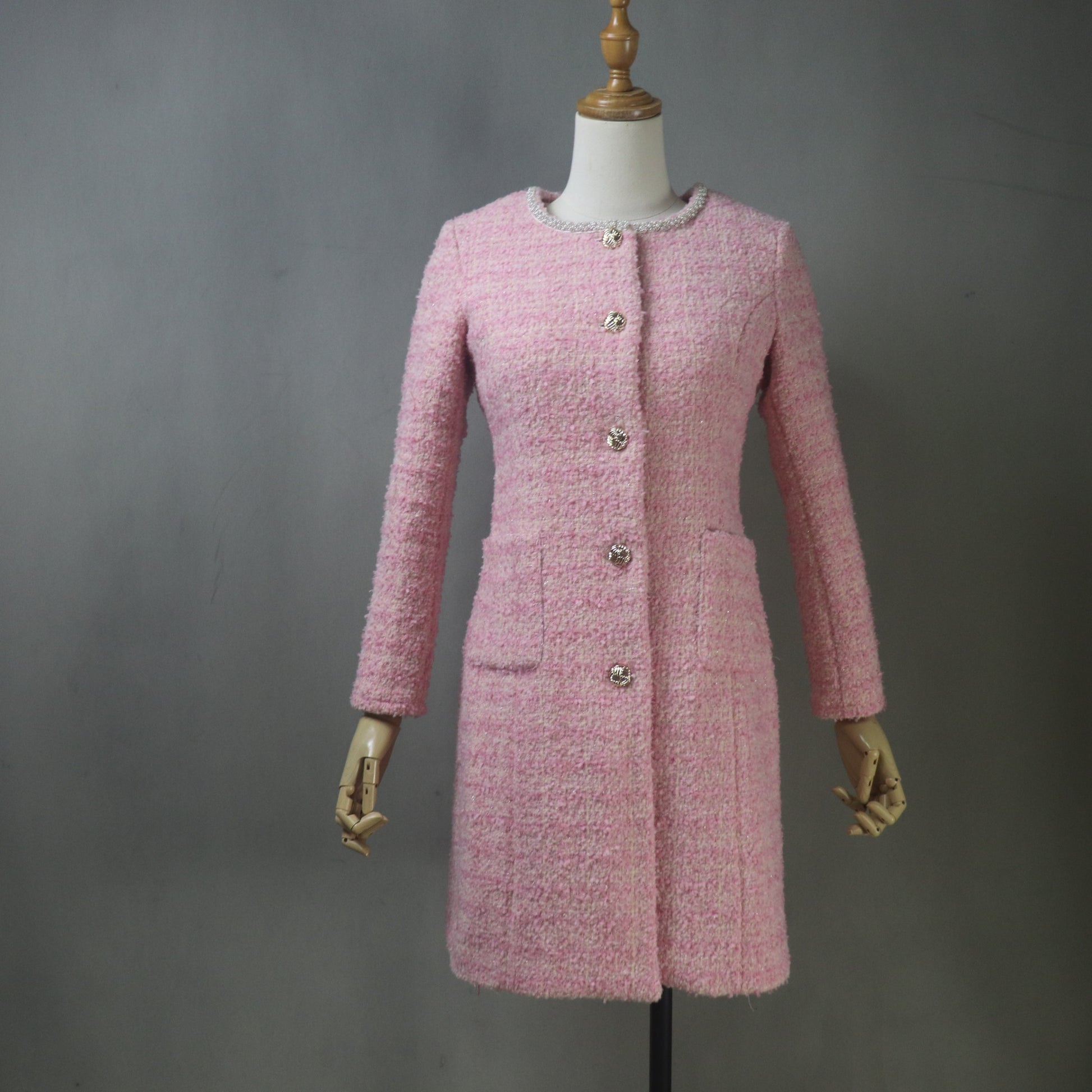Pink Tweed Dress and Long Coat Set, Made-to-Measure, Any length